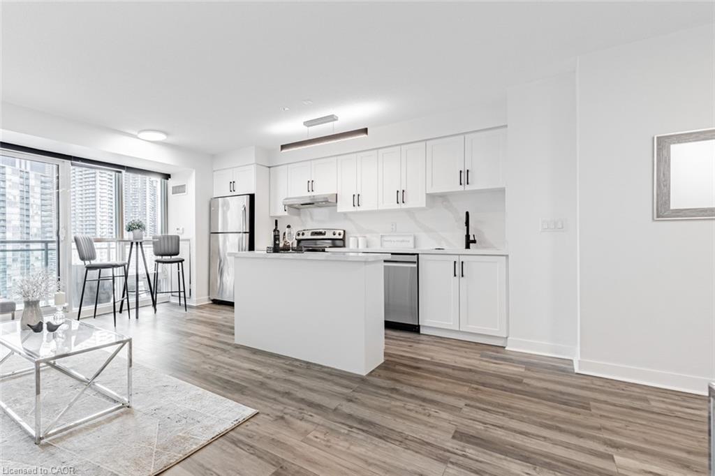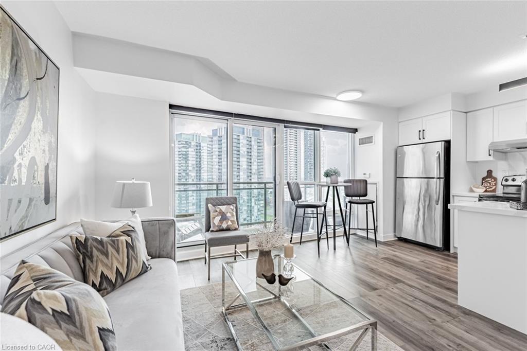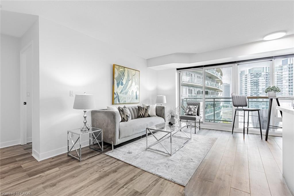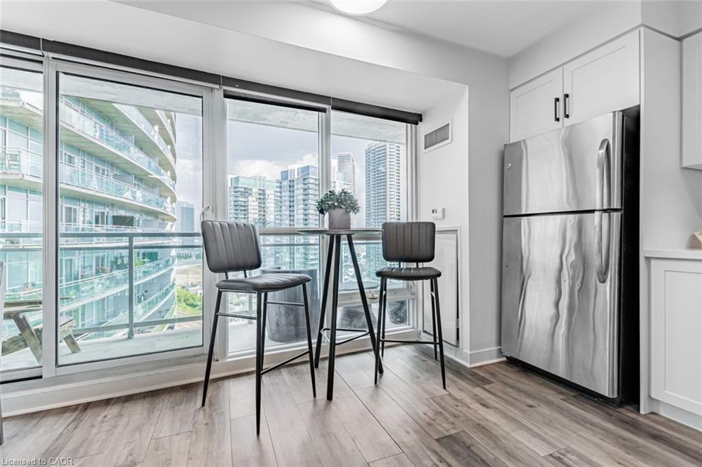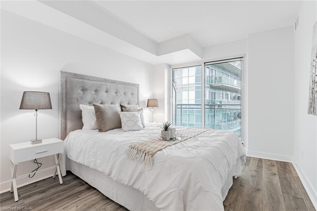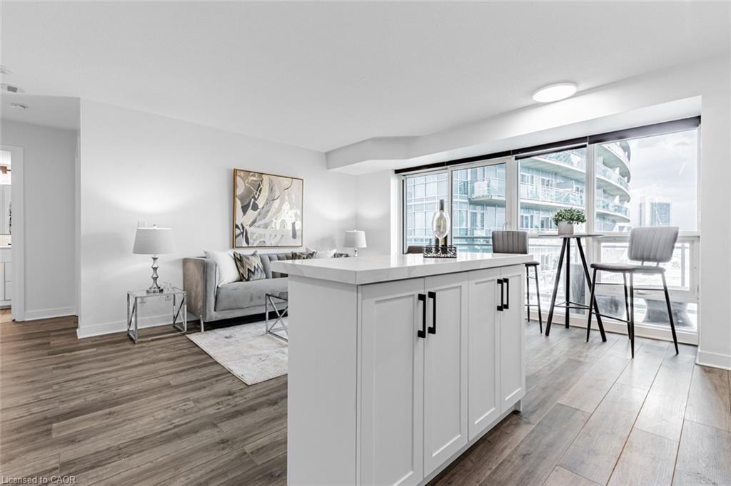 Experience Modern Waterfront Living At Its Finest In This Bright And Beautifully Upgraded 1 Bedroom + Den Suite At The Highly Sought-After Iloft Condos, Perfectly Situated Along Mimico Creek With Peaceful Nature Views And Serene Glimpses Of Lake Ontario. Offering 640 Sq. Ft. Of Functional, Contemporary Living Space, This Home Showcases An Open-Concept Layout Flooded With Natural Light From Floor-To-Ceiling Windows And Two Private Balconies Ideal For Morning Coffee Or Evening Relaxation. The Modern Kitchen Boasts Quartz Countertops, Stainless Steel Appliances, A Sleek Backsplash, And A Centre Island With Breakfast Bar Perfect For Casual Dining Or Entertaining. The Versatile Den Offers Flexibility For A Home Office, Dining Area, Or Reading Nook, While The Spacious Primary Bedroom Features A Large Closet And Direct Walk-Out To Its Own Balcony Retreat. Recently Refreshed With New Paint And Designer Lighting, This Suite Is Move-In Ready And Exudes A Fresh, Contemporary Feel. Residents Enjoy Premium Amenities Including A 24-Hour Concierge, Fitness Centre, Outdoor Pool, Hot Tub, And Party Room. Ideally Located In The Heart Of Mimico, Steps To Trails, Parks, Shops, Cafes, Restaurants, And Transit, With Easy Access To The Gardiner Expressway And Downtown Toronto. One Underground Parking Space Included - A Perfect Blend Of Style, Comfort, And Urban Convenience.