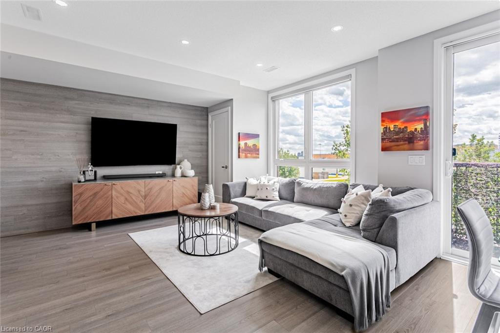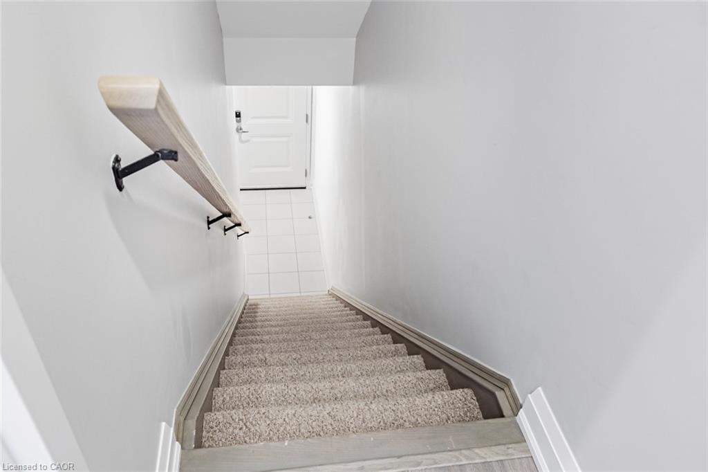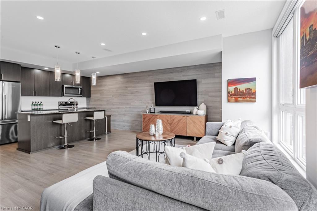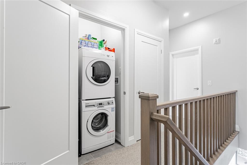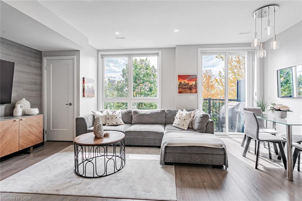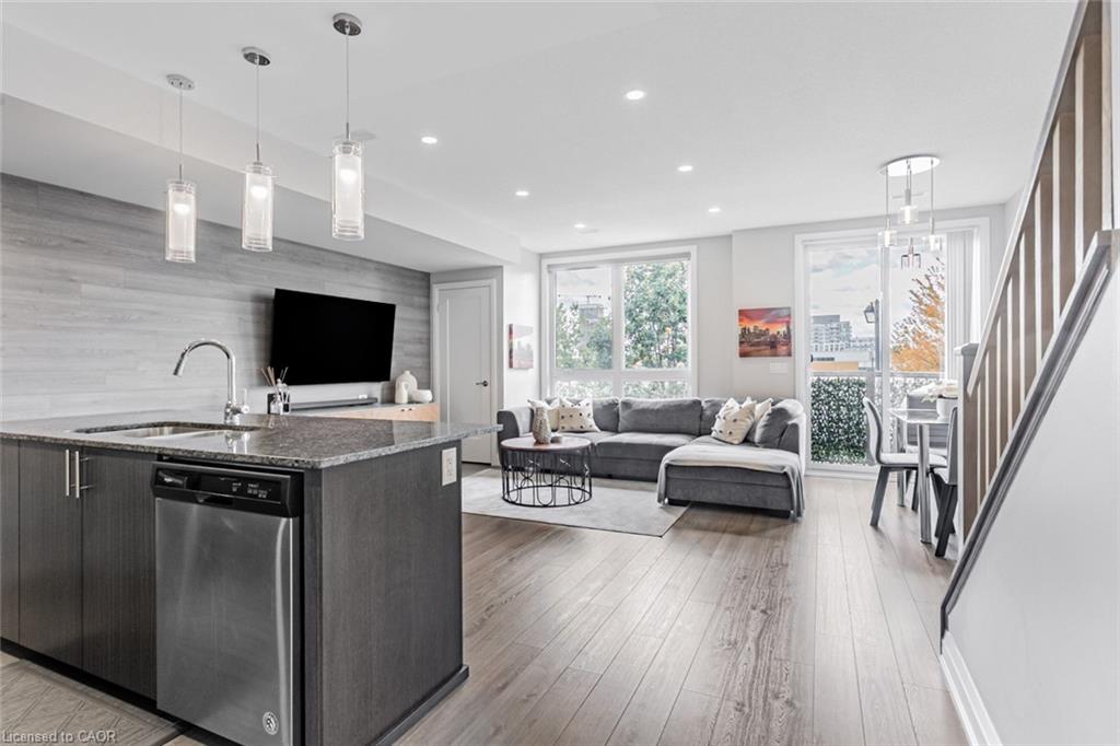 Immaculate 2-Bedroom, 3-Bathroom Stacked Townhome In The Heart Of Milton's Highly Desirable Dempsey Community - Featuring A Rare Layout With Two Full Baths Upstairs! This Upper-Level Townhome Impresses With 2 Parking Spaces (Side-By-Side) And An Oversized Locker, Delivering A Level Of Convenience That's Hard To Find Elsewhere. Step Inside To A Cozy Foyer Leading Up To A Bright, Airy Main Level Enhanced With Pot Lights Throughout And A Seamless Open-Concept Layout That Feels Instantly Welcoming. The Modern Kitchen Is Beautifully Appointed With Granite Countertops, Stainless Steel Appliances, Subway Tile Backsplash, And A Spacious Centre Island - Perfect For Morning Coffee Or Hosting Friends. The Sun-Filled Living Room, Accented By A Custom Feature Wall, Opens Onto A Private West-Facing Balcony Overlooking The Escarpment, Allowing You To Bask In Natural Light And Enjoy Stunning Evening Sunsets. A Well-Appointed Powder Room And Coat Closet Complete The Main Floor. Upstairs, The Primary Suite Offers A Peaceful Retreat With A Walk-In Custom Closet And A Private 3-Piece Ensuite. A Generous Second Bedroom, Stylish Common Bath, And In-Suite Laundry Add Everyday Comfort And Functionality. Perfect For Those Seeking A Low-Maintenance Lifestyle Without The High-Rise Feel, This Home Offers Maintenance-Free Living - With Grass Cutting And Snow Removal Taken Care Of. Situated Just Off Harris Boulevard, You'll Appreciate The Ease Of Access Without Having To Drive Deep Into The Complex. Close To Milton GO, HWY 401, Top-Rated Schools, Parks, Trails, Shopping, And Dining, This Home Seamlessly Combines Modern Living, Timeless Design, And Everyday Practicality.