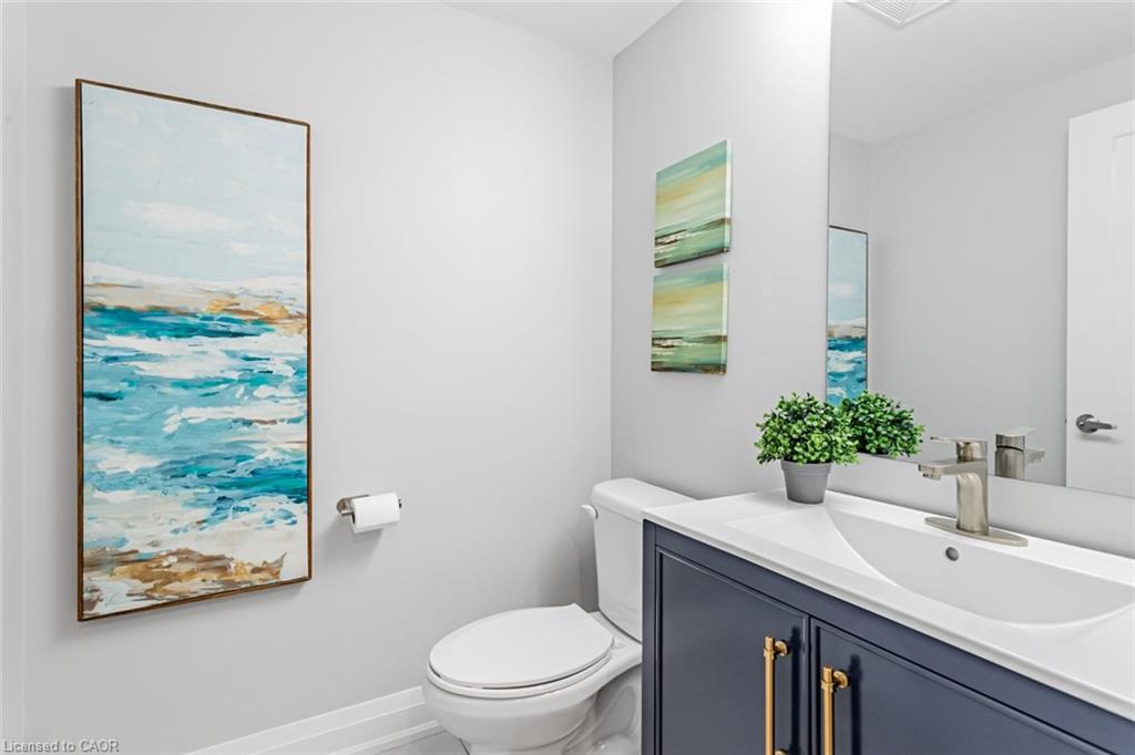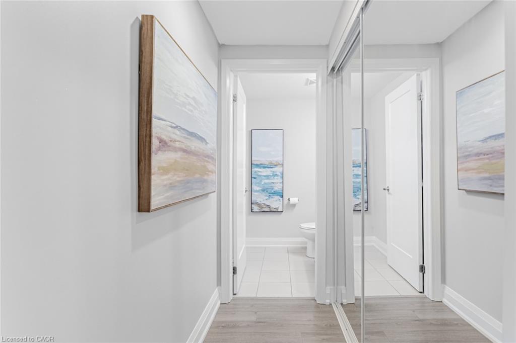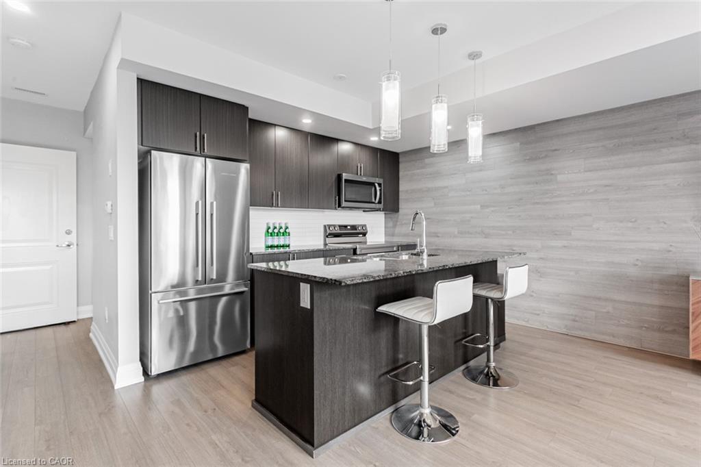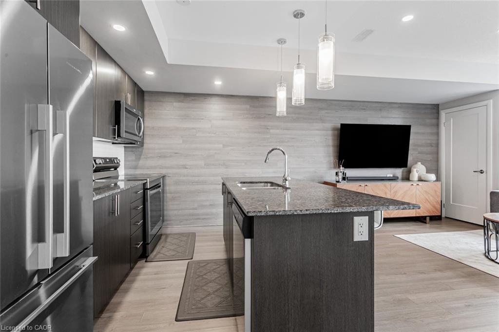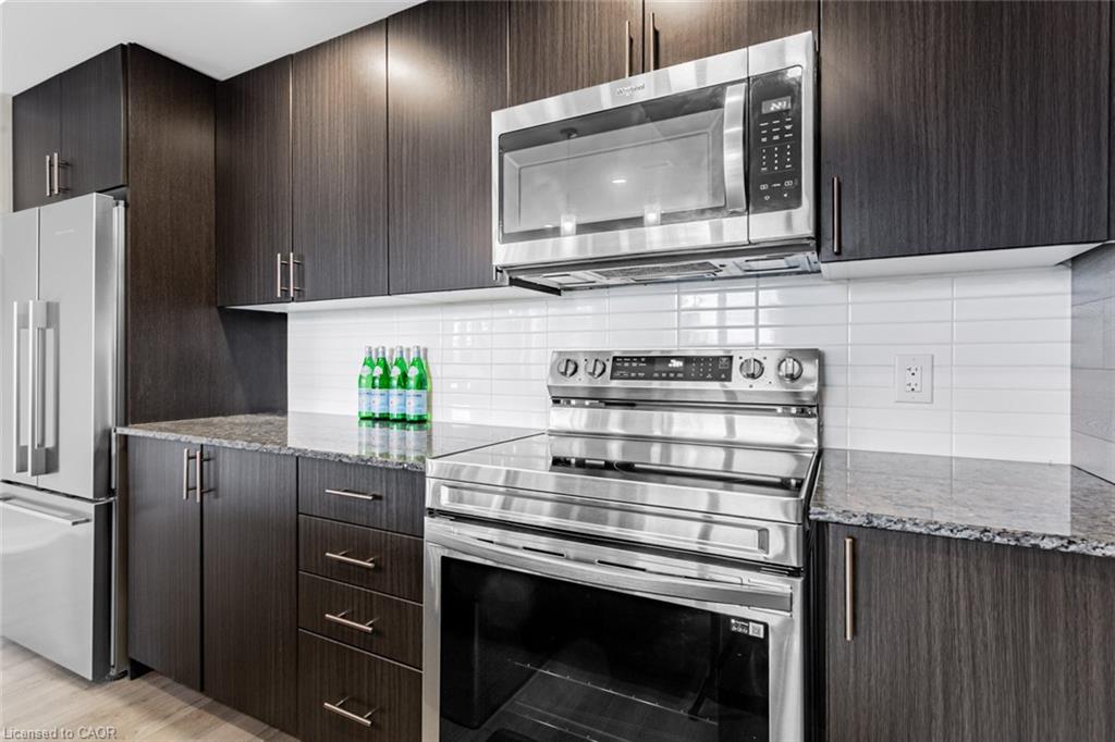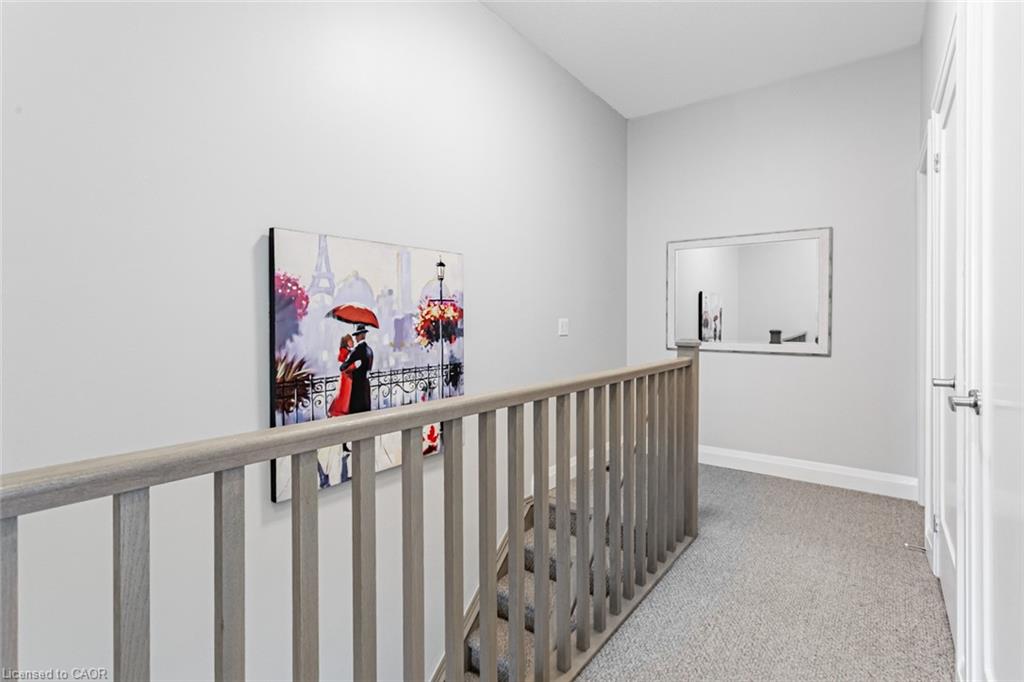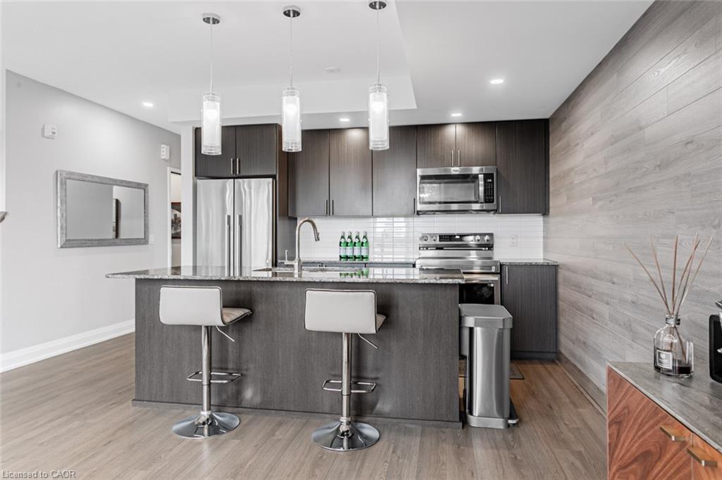 Immaculate 2-Bedroom, 3-Bathroom Stacked Townhome In The Heart Of Milton's Highly Desirable Dempsey Community - Featuring A Rare Layout With Two Full Baths Upstairs! This Upper-Level Townhome Impresses With 2 Parking Spaces (Side-By-Side) And An Oversized Locker, Delivering A Level Of Convenience That's Hard To Find Elsewhere. Step Inside To A Cozy Foyer Leading Up To A Bright, Airy Main Level Enhanced With Pot Lights Throughout And A Seamless Open-Concept Layout That Feels Instantly Welcoming. The Modern Kitchen Is Beautifully Appointed With Granite Countertops, Stainless Steel Appliances, Subway Tile Backsplash, And A Spacious Centre Island - Perfect For Morning Coffee Or Hosting Friends. The Sun-Filled Living Room, Accented By A Custom Feature Wall, Opens Onto A Private West-Facing Balcony Overlooking The Escarpment, Allowing You To Bask In Natural Light And Enjoy Stunning Evening Sunsets. A Well-Appointed Powder Room And Coat Closet Complete The Main Floor. Upstairs, The Primary Suite Offers A Peaceful Retreat With A Walk-In Custom Closet And A Private 3-Piece Ensuite. A Generous Second Bedroom, Stylish Common Bath, And In-Suite Laundry Add Everyday Comfort And Functionality. Perfect For Those Seeking A Low-Maintenance Lifestyle Without The High-Rise Feel, This Home Offers Maintenance-Free Living - With Grass Cutting And Snow Removal Taken Care Of. Situated Just Off Harris Boulevard, You'll Appreciate The Ease Of Access Without Having To Drive Deep Into The Complex. Close To Milton GO, HWY 401, Top-Rated Schools, Parks, Trails, Shopping, And Dining, This Home Seamlessly Combines Modern Living, Timeless Design, And Everyday Practicality.