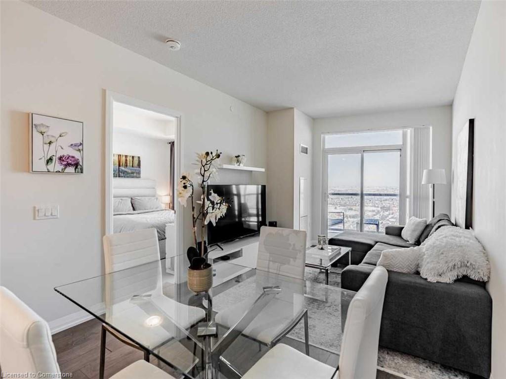 Luxurious Pinnacle Built Perla Condo At The Heart Of Mississauga. Very Spacious (635 Sqft W/Balcony) 1 Bed Unit With 9Ft Ceilings W/Floor To Ceiling Windows, Modern Kitchen W/Granite Counter Top & Stainless Steel Appliances W/Soft Close Cabinetry & Valence Lights. Beautiful Balcony W/Views Of Mississauga & Toronto Skyline. Multiple Amenities, 24Hr Concierge Service, Gym, Party Room, Theatre Room.