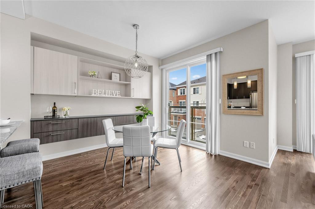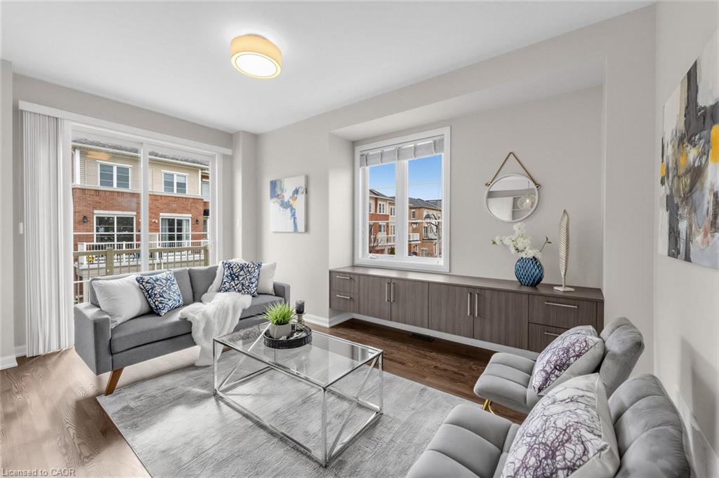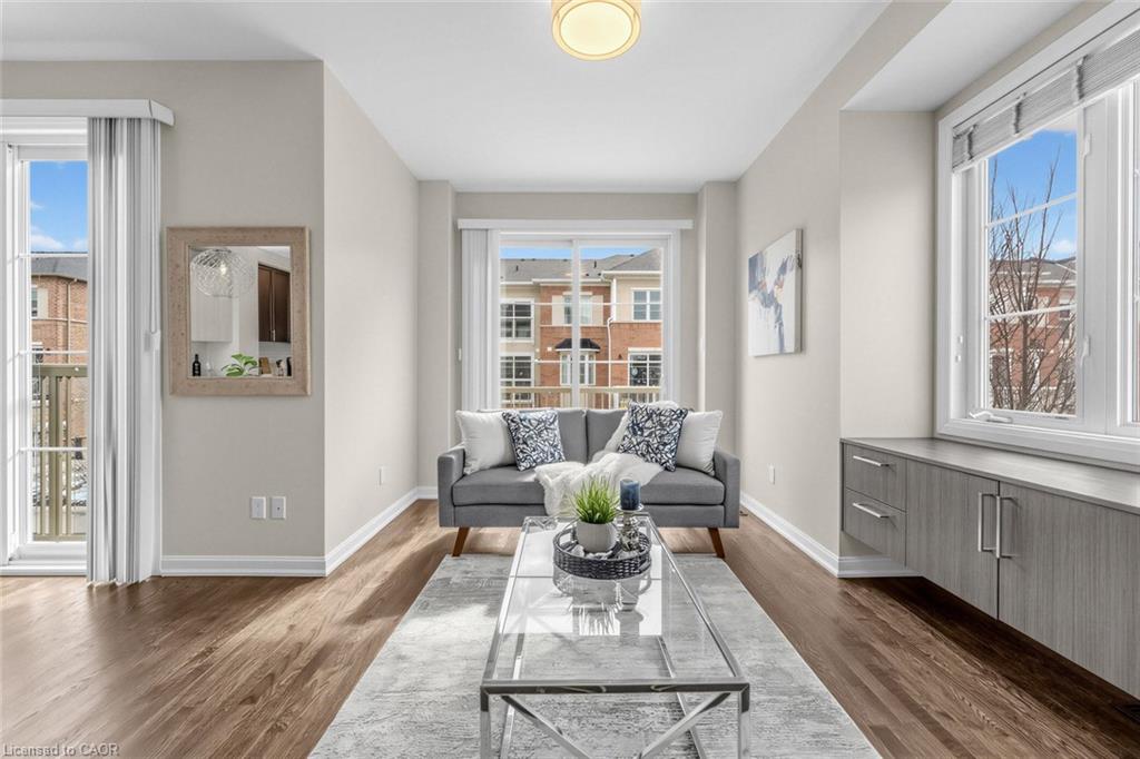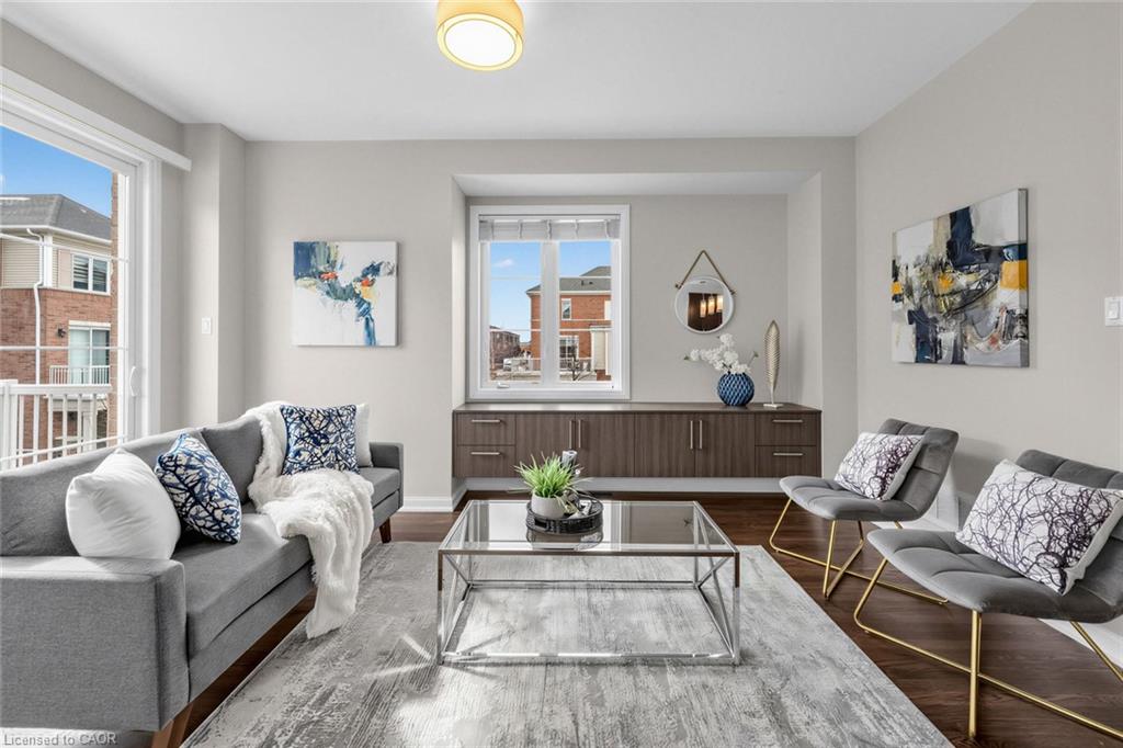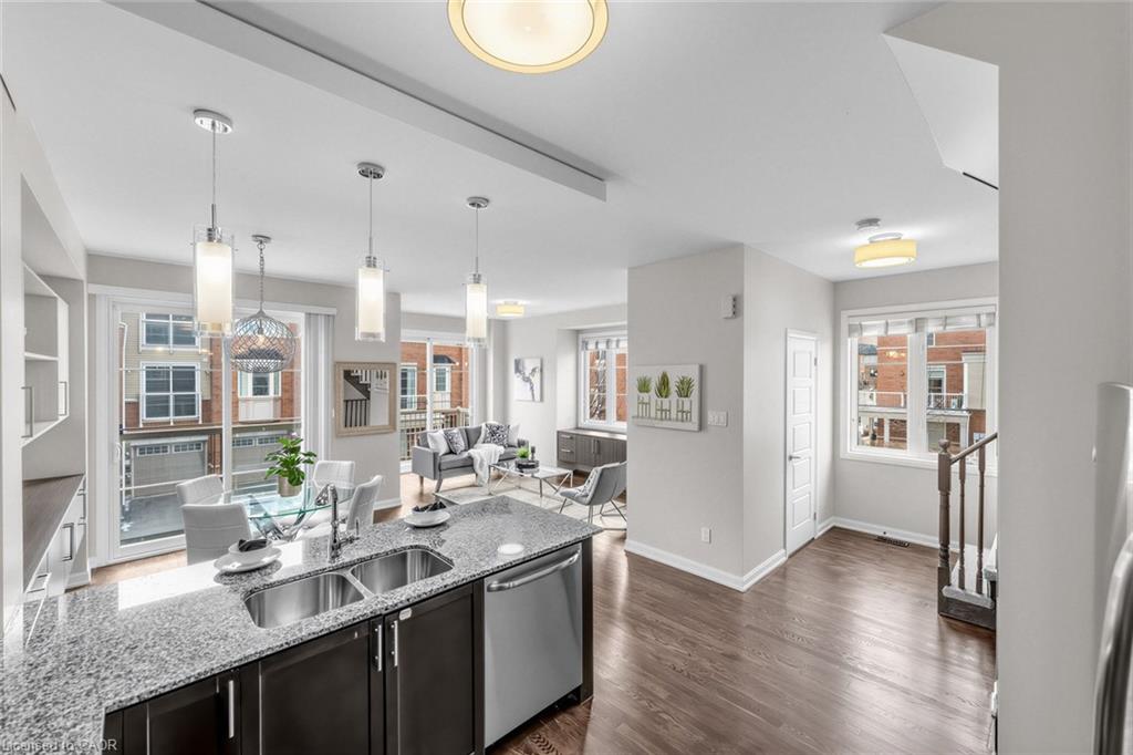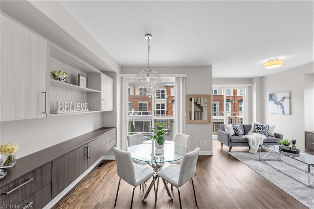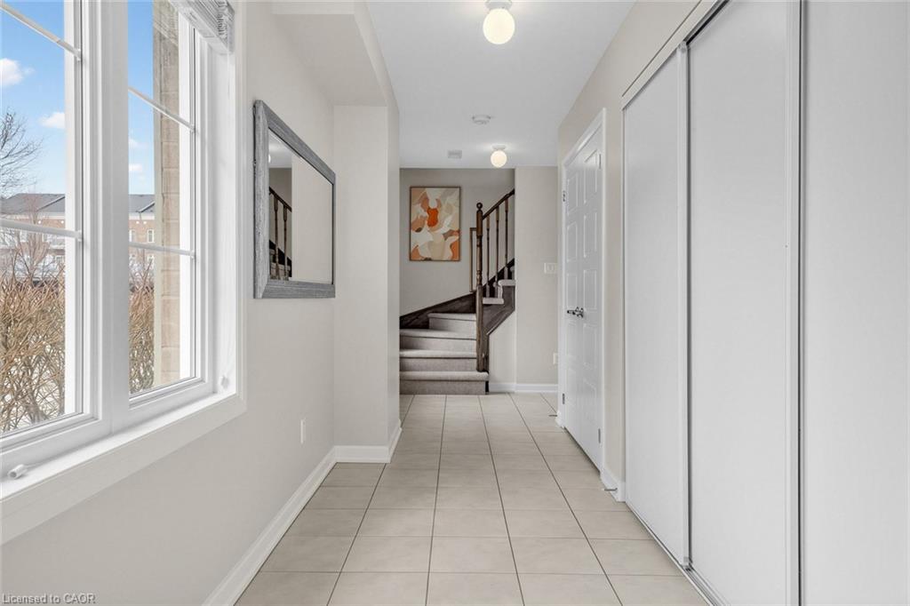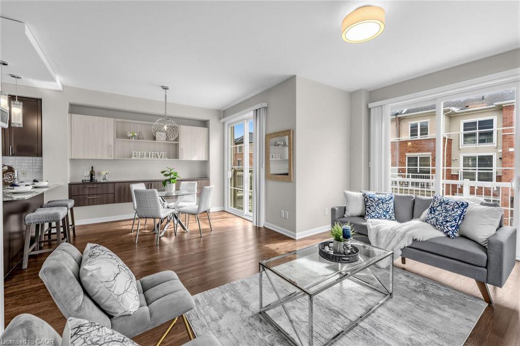 Welcome To 165 Hampshire Way #92, Milton - A Rare End-Unit Townhome That Lives Like A Semi. Nestled On A Premium Corner Lot This 3 Bedroom, 3 Bathroom Home Is Flooded With Natural Light From Multiple Exposures - A True Standout In The Complex. With Visitor Parking Conveniently Located Right Next Door, Everyday Living And Entertaining Are Seamless. Beautifully Updated And Completely Move-In Ready, Featuring Fresh Paint, Newly Refinished Hardwood Floors And Contemporary Light Fixtures Throughout. Offering Approximately 1,444 Sq Ft Of Functional, Well-Planned Living Space Designed For Both Comfortable Family Living And Effortless Entertaining. The Ground Level Welcomes You With A Bright Foyer Featuring A Coat Closet, Front-Load Laundry, Direct Garage Access And Additional Under-Stair Storage - Practical And Convenient For Daily Living. The Main Level Is The Heart Of The Home Featuring 9Ft Ceilings - Showcasing A Modern Kitchen With Stainless Steel Appliances, Granite Counters, Subway Tile Backsplash And Breakfast Bar Overlooking The Dining Area With Custom Built-In Cabinetry. The Space Flows Seamlessly Into A Spacious, Sun-Filled Living Room With Walkout To A Private Balcony - Perfect For Hosting Or Relaxing In An Open, Airy Setting. A Stylish Powder Room Completes This Level. The Upper Level Offers A Spacious Primary Retreat With Dual Closets And A 4-Piece Ensuite Featuring Quartz Counters And A Soaker Tub. Two Additional Generous Bedrooms And An Updated 3-Piece Bathroom With Glass Shower Provide Ideal Space For Family Or Guests. Includes 1 Garage And 1 Driveway Parking Space. Low Monthly POTL Fees Cover Snow Removal & Landscaping - Delivering True Low-Maintenance Living. Ideally Located Close To Top-Rated Schools, Parks, Trails, Shopping, Restaurants, Milton District Hospital, And With Quick Access To Hwy 401, 407 And Milton GO - Making This An Exceptional Opportunity For Families And Commuters Alike.